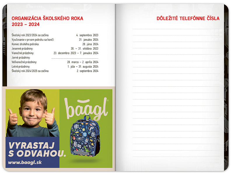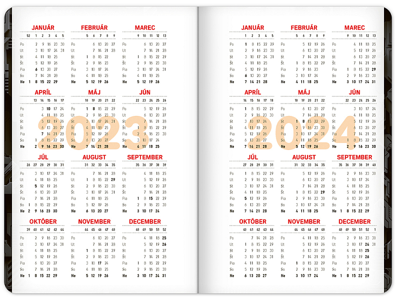Školský diár Technik (september 2023 – december 2024), 9,8 × 14,5 cm