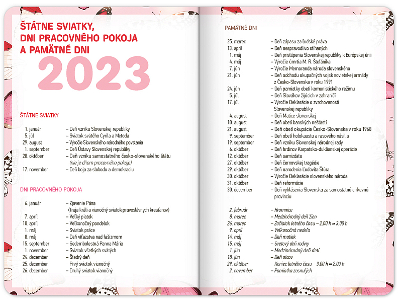 Školský diár Motýliky (september 2023 – december 2024), 9,8 × 14,5 cm
