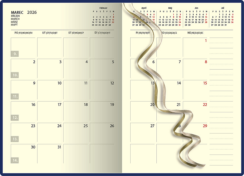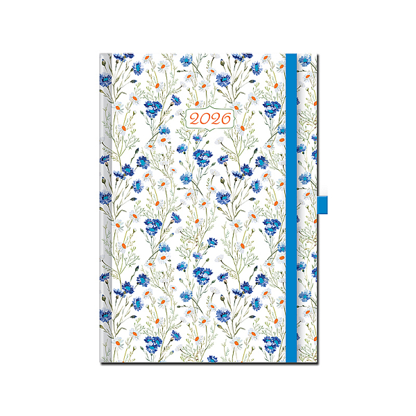 Exkluzívny denný diár s motívom KVETY. Diár je v pevnej väzbe s prednou penou, soft touch laminom s medenou a modrou razbou. Slovenské kalendárium.
