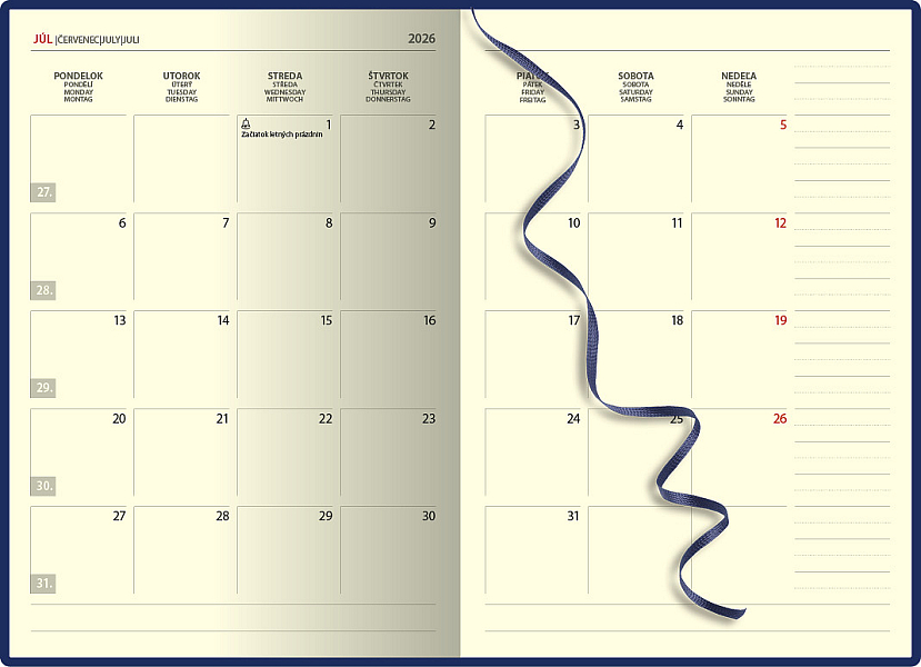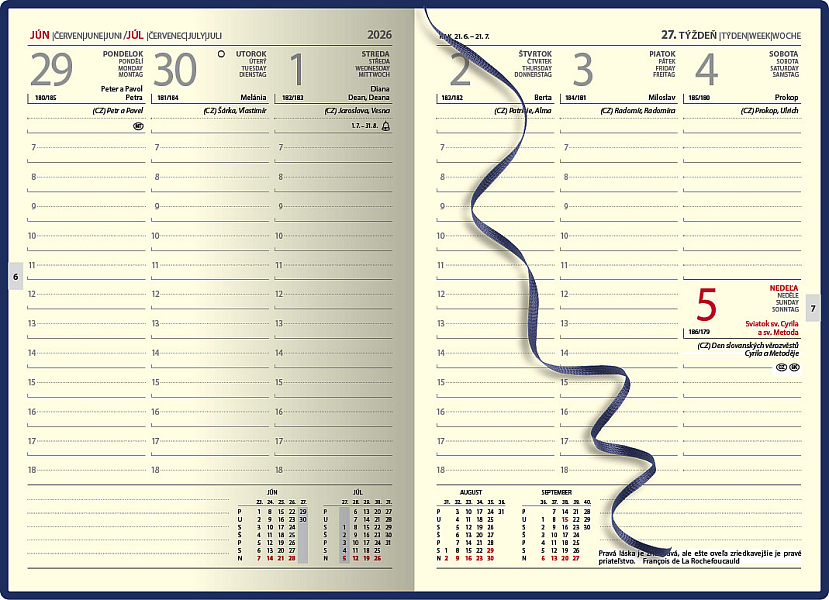 Manažérsky týždenný diár s prehľadným kalendáriom na celý týždeň. Diár je v pevnej väzbe s prednou penovou doskou. Poťah je z ekologickej kože, ktorú dotvára jedinečný dizajn termo razbou. Obsahuje slovenské kalendárium.