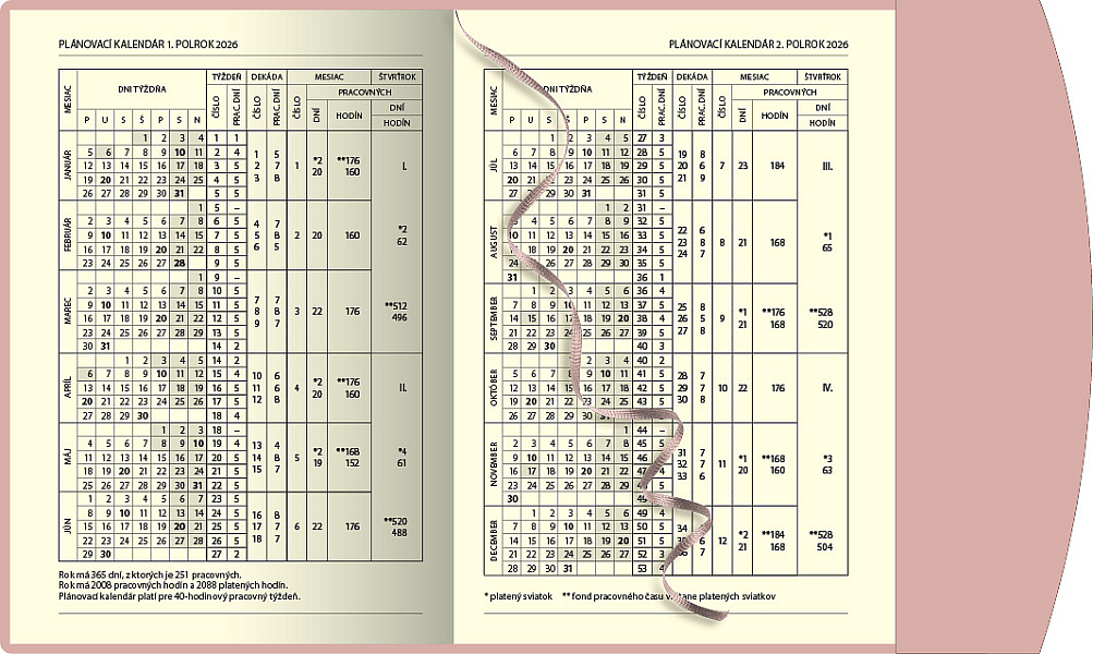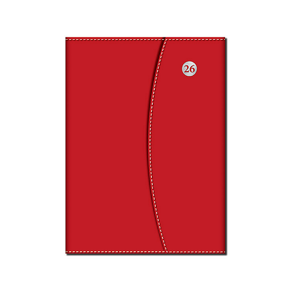 Týždenný stĺpcový diár z ekologickej kože doplnený ozdobným prešitím, strieborná razba roka, magnetické zatváranie.